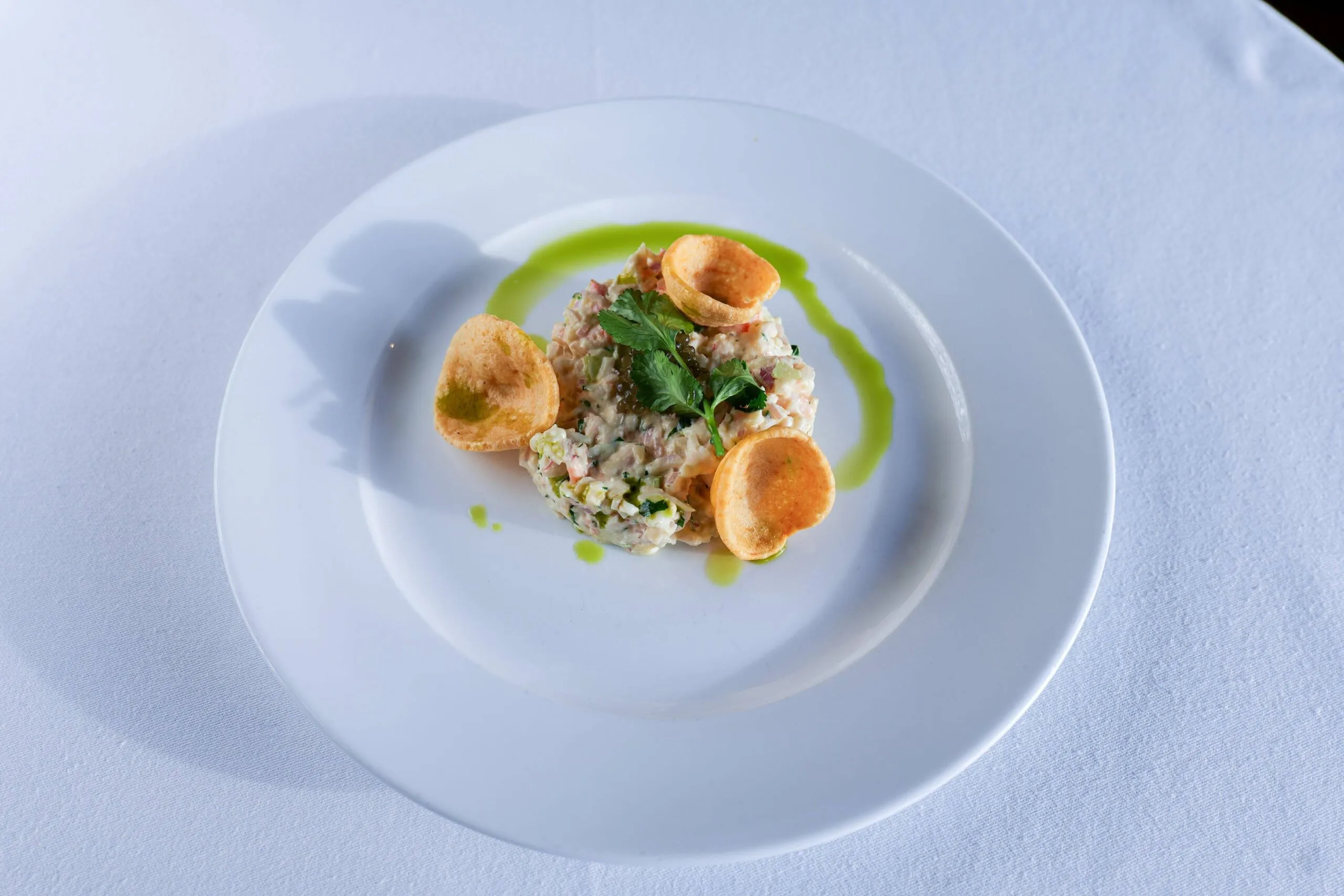 Kikert-tartar, persillemajones, søtpotetchips, nordisk salsa